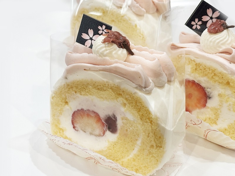 (香川県産いちごに生クリーム&桜餡のロールケーキ)