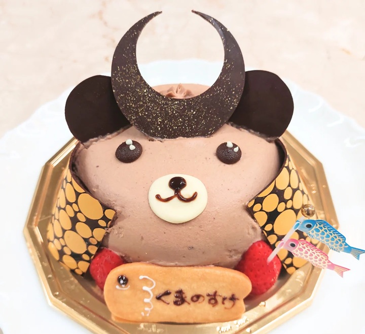 かっこかわいい「クマの兜(かぶと)」ケーキです。